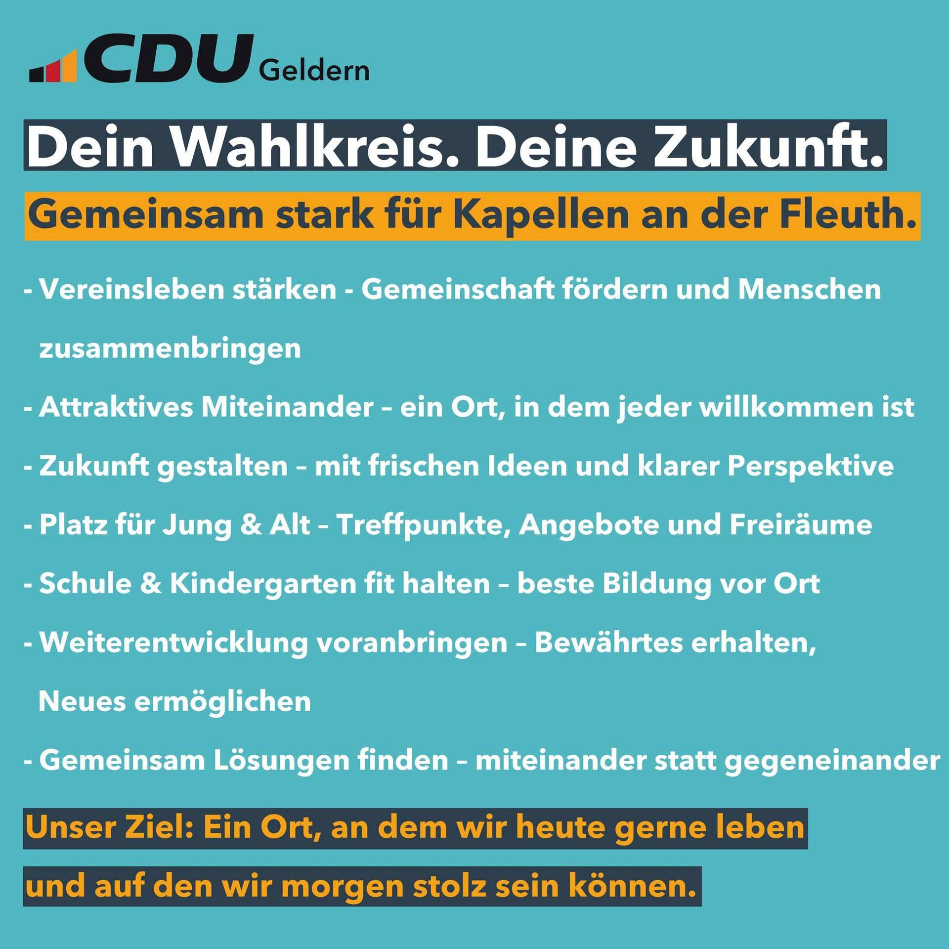 Kapellen an der Fleuth ist unser Zuhause – ein Ort, an dem man sich kennt, wo Nachbarschaft zählt und wo Vereine, Feste und Traditionen das Leben bunt machen. Wir wollen, dass unser Ort auch in Zukunft lebendig, offen und herzlich bleibt – und gleichzeitig mutig nach vorne schaut.