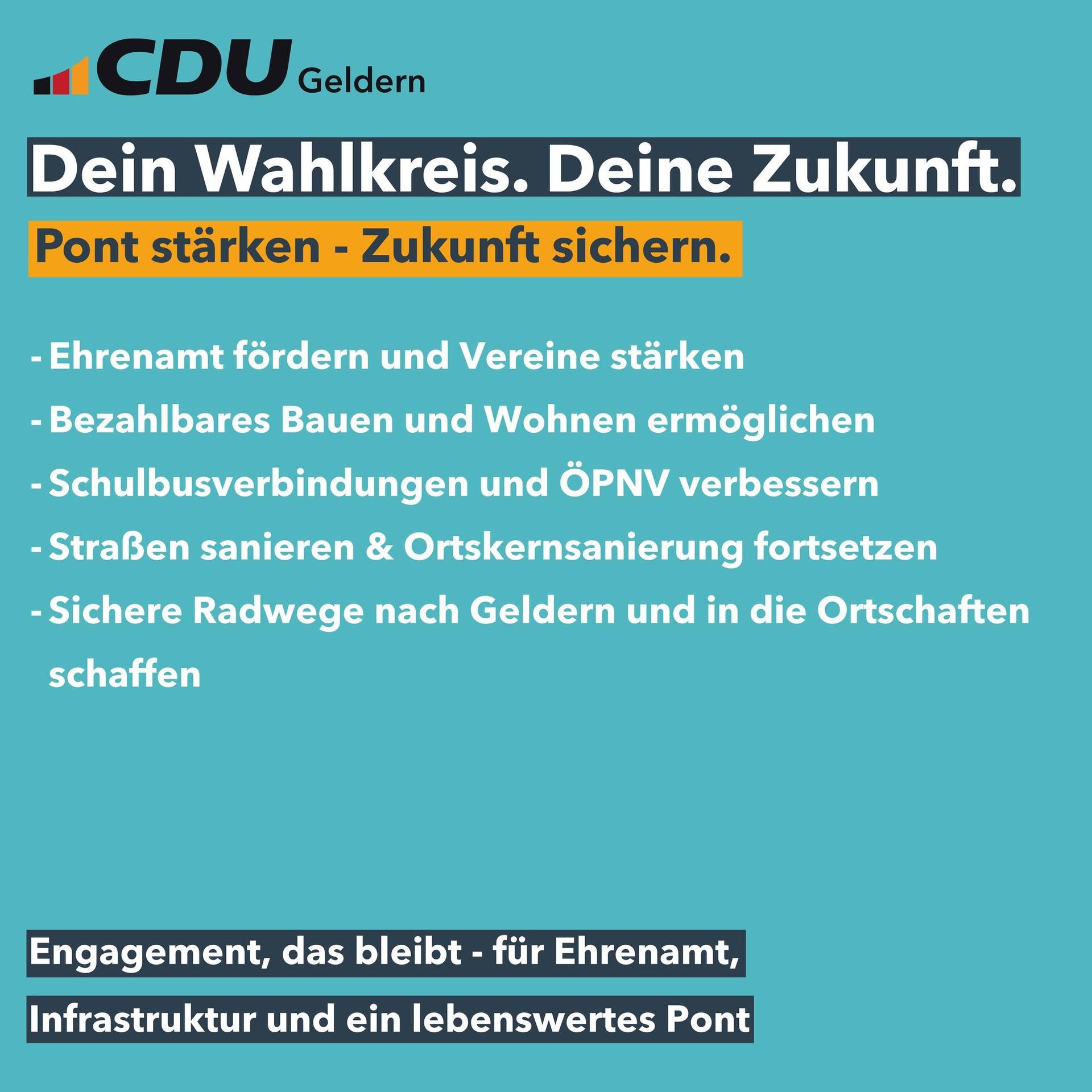 Seit 2013 engagiere ich mich in der Politik – anfangs, um das Ehrenamt und das Vereinsleben in Pont zu stärken. Mittlerweile vertrete ich als Mitglied in verschiedenen Ausschüssen und im Rat der Stadt Geldern viele weitere Themen, die unsere Ortschaft betreffen.